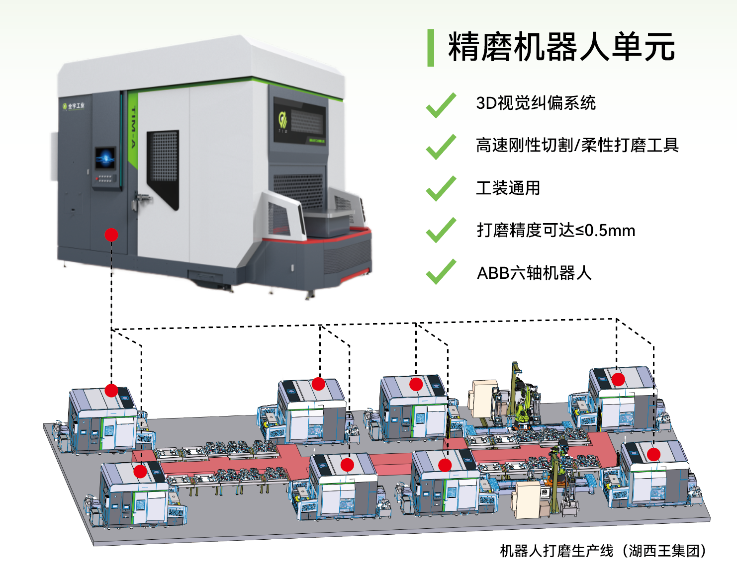本次展出的單臺(tái)智能打磨機(jī)器人來自湖西王集團(tuán)惠購的機(jī)器人打磨生產(chǎn)線。湖西王集團(tuán)是中國(guó)鑄造行業(yè)綜合百強(qiáng)企業(yè)、中國(guó)鑄造行業(yè)排頭兵企業(yè),持續(xù)20余年為商用車、工程機(jī)械、農(nóng)業(yè)裝備、特種車輛、機(jī)器人風(fēng)電領(lǐng)域等六大領(lǐng)域提供高品質(zhì),低成本,可持續(xù)的各類鑄件及軸承零部件,其客戶主要為高端裝備制造業(yè)世界500強(qiáng)企業(yè),產(chǎn)品覆蓋四大洲超過20多個(gè)發(fā)達(dá)國(guó)家及地區(qū)。